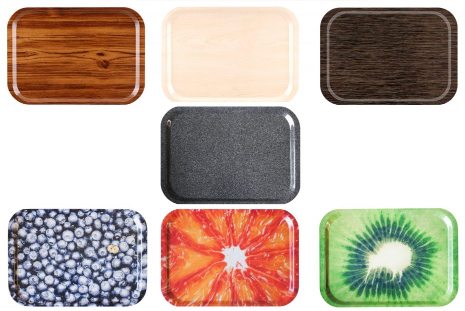They are made out of a powerful layered structure of fibre paper and resin. The double laminated finish provides a scratch resistant and low maintenance surface. The trays are suitable for use in temperature range from -20°C to +110°C.