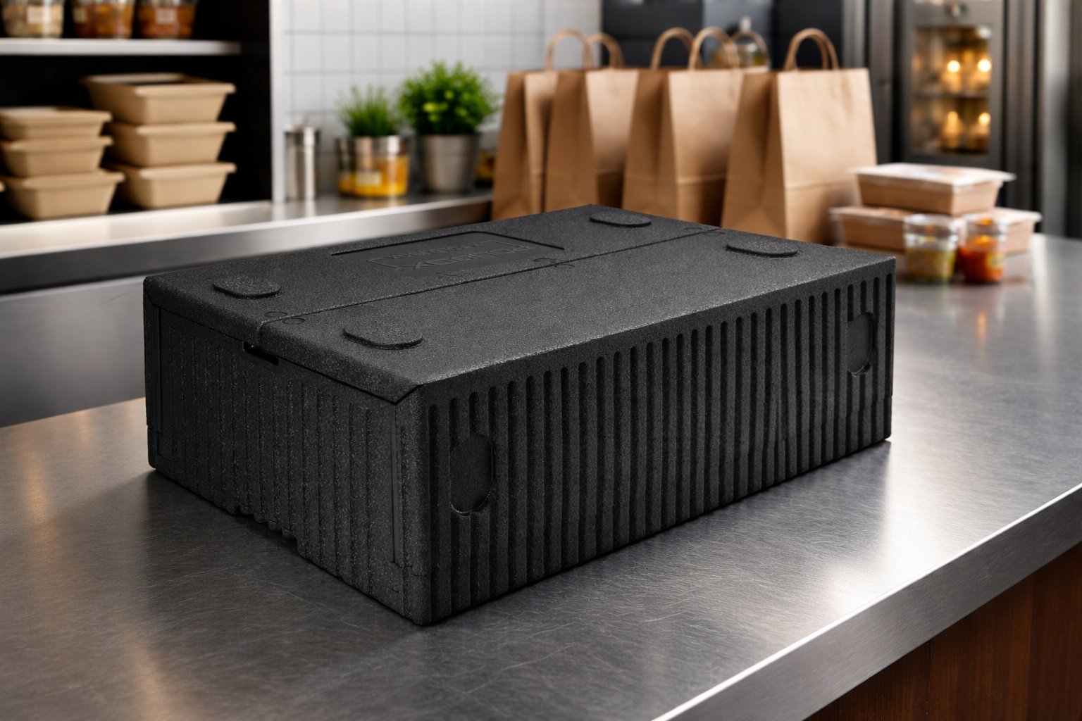 Manufactured from high-quality expanded polypropylene (EPP), the container is lightweight, durable, and environmentally friendly. The material is composed of 98% air and is 100% recyclable, making it an eco-conscious choice for professional food transport. Polypropylene is food-safe, odourless, and tasteless, ensuring no impact on food quality. The container is also easy to clean, sanitise, and dishwasher safe, making it ideal for repeated daily use.